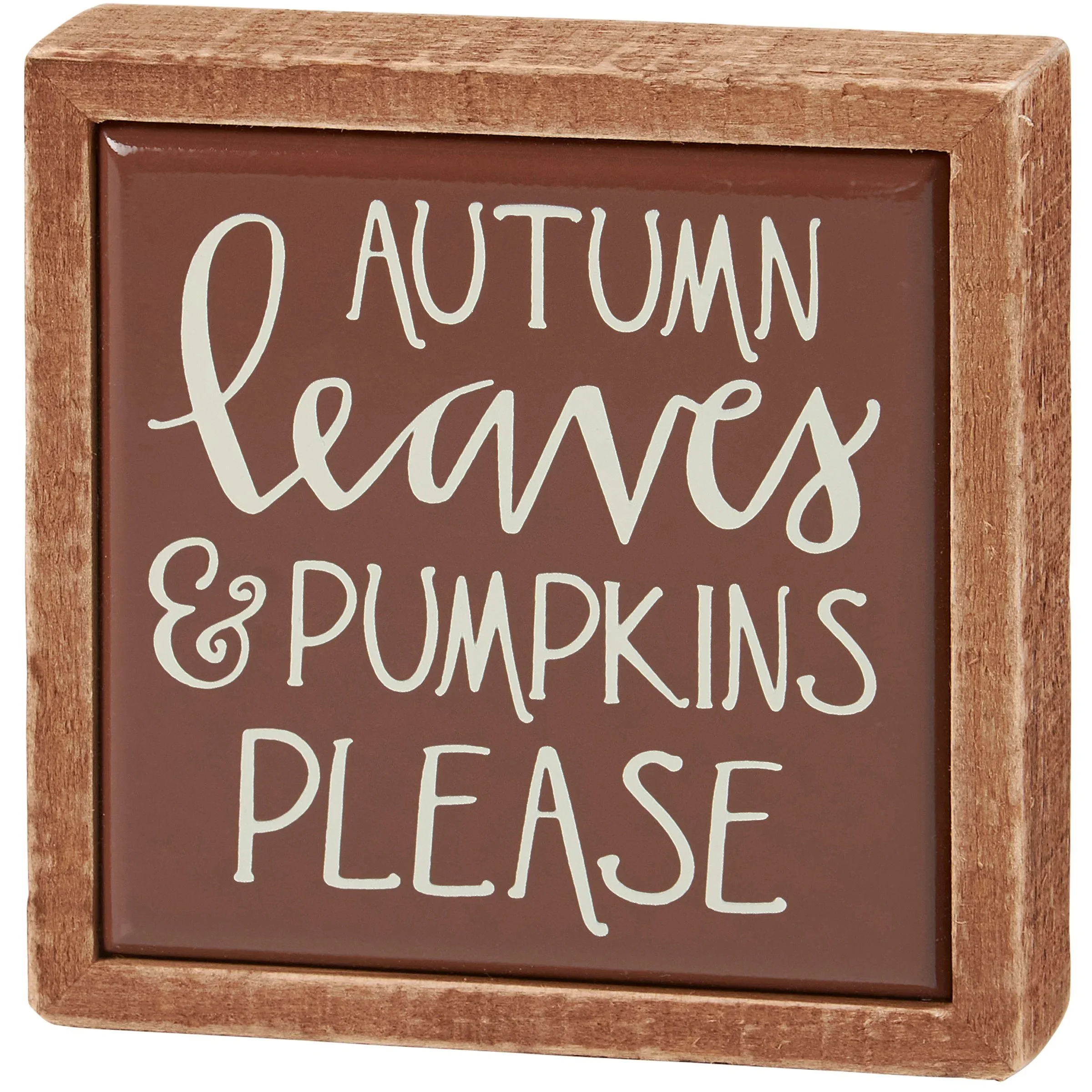 Primitives by Kathy small wooden box sign displaying a sarcastic seasonal sentiment in a hand illustrated style on autumn orange background that reads "Thanks Fall - My Muffin Top Is Now A Pumpkin Roll." Fun fall sign features a natural wood frame and faux enamel finish behind design for a tile-like appearance. Thanks Fall sign is easy to hang or can free-stand on flat surface for display.